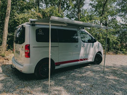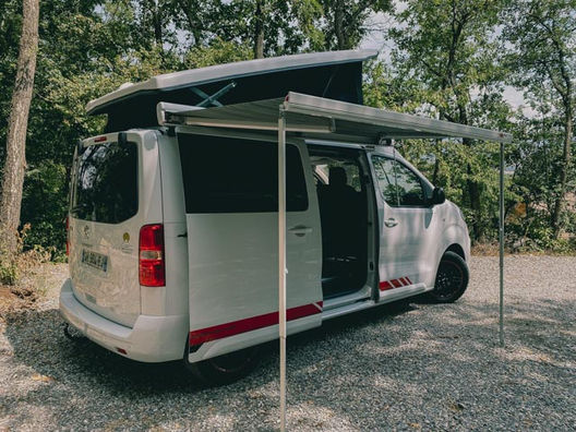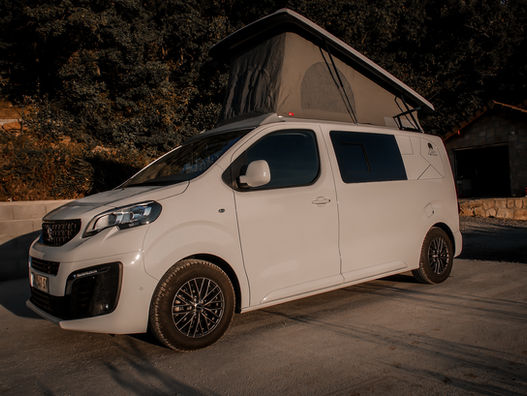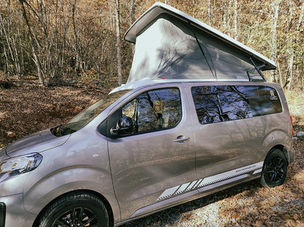 Aménagement Peugeot Expert Homologué VASP 3 places. Toit levable BRAM, lit peigne, chauffage stationnaire Autotherm 2D confort, 42 litres d’eau propre, douchette sur meuble cuisine, batterie lithium 100 Ah, panneaux solaire 160 Watts.