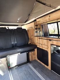 Toit levable SCA – Mobilier HPL sur mesure – Banquette 2 places route convertible en lit de chez Mobiframe – chauffage stationnaire autotherm 2D – Baie coulissant Carbest – Siège avant pivotant RIB – Panneaux solaire 160W – circuit 220v avec chargeur intégré – circuit 12v ave chargeur booster et MPPT de chez Victron et batterie lithium 85 AH - 49 litre d’eau propre et 24 litres eaux usées - Isolation Armaflex + coton recyclé - Homologation VASP 4 places